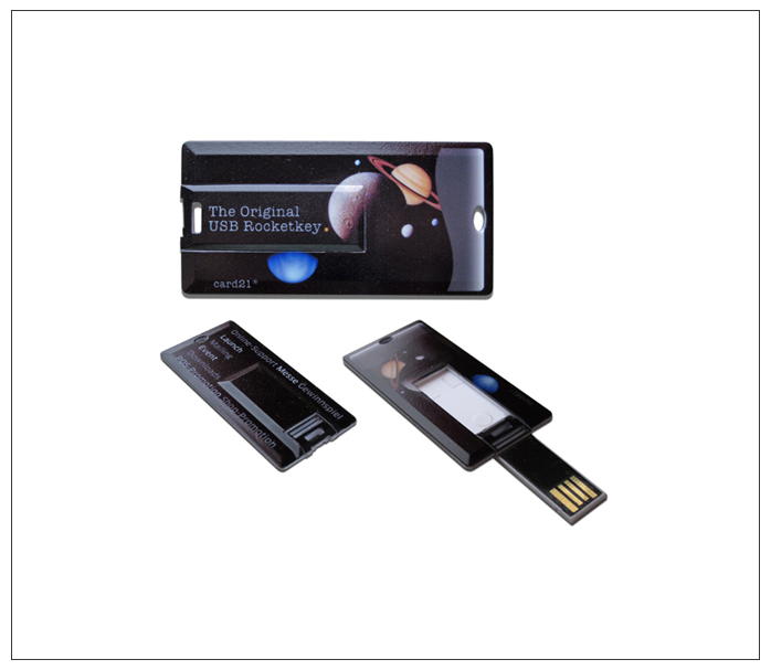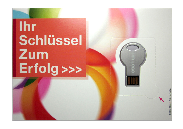 USB Rocketkey Flyer, Abbildung: DIN lang Postkarte mit heraustrennbarer USB-Webkeykarte