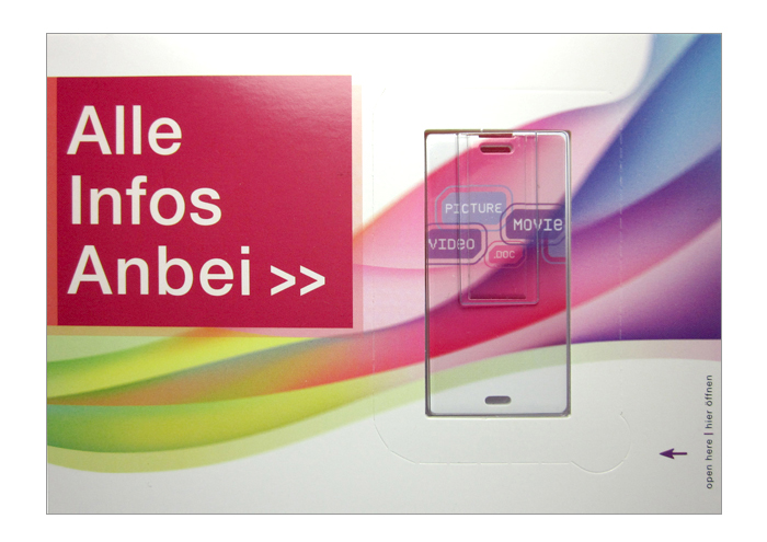 Abbildung: USB DIN A4 webkey-folder mit heraustrennbarer, herausnehmbarer USB-webkeykarte